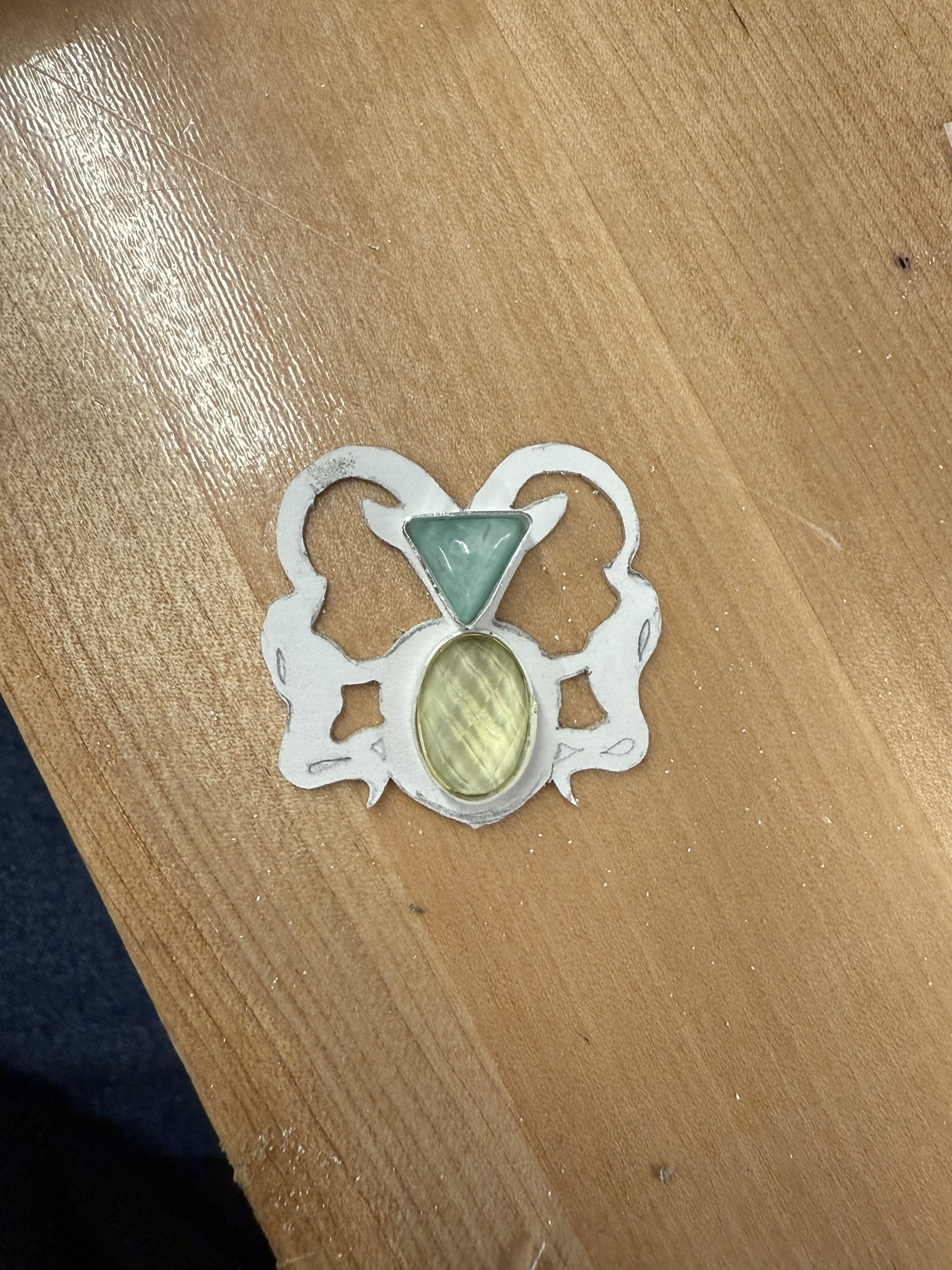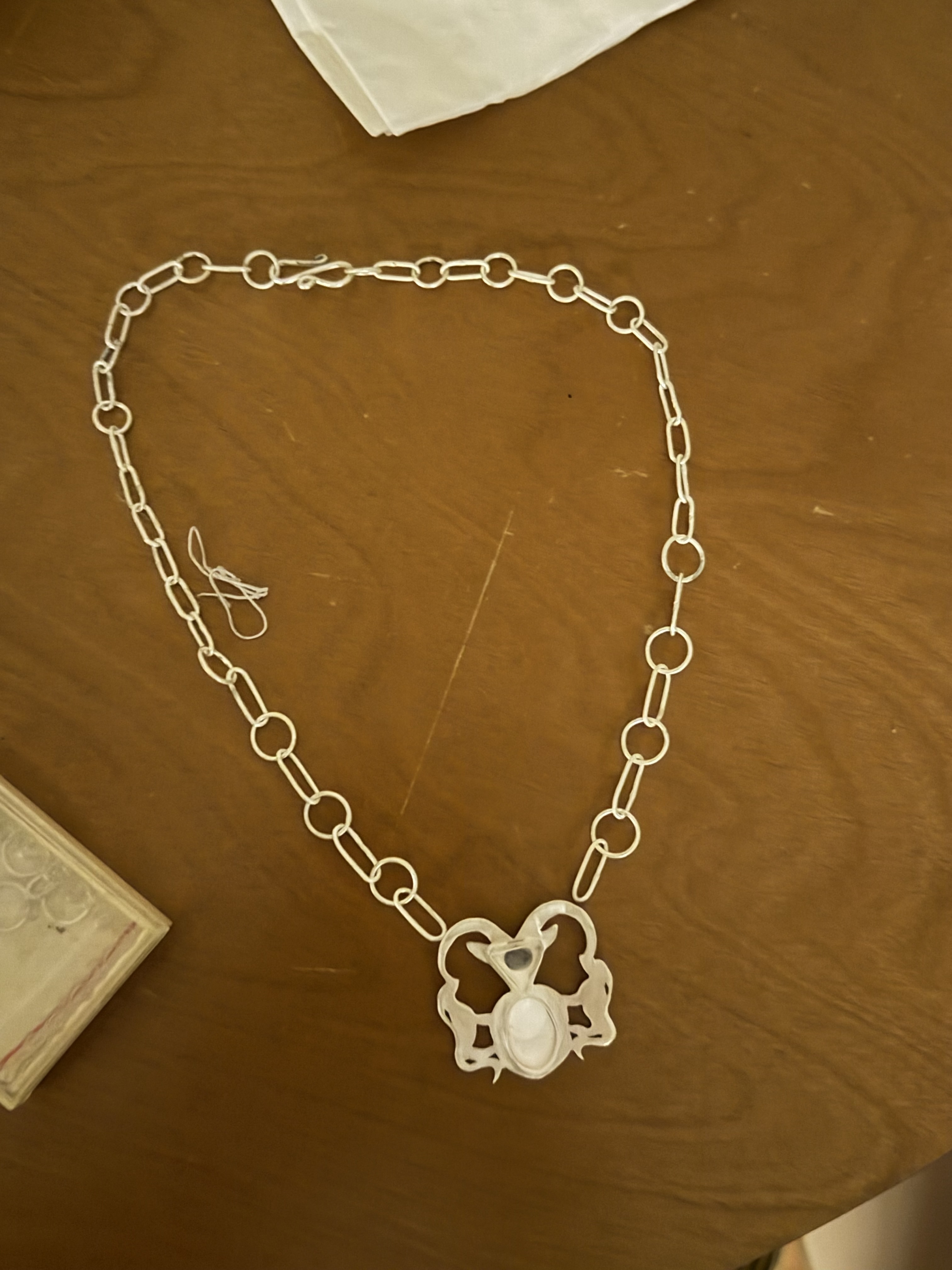 This is a necklace I started a while ago, the design of the pendant is based on this harness trapping from the Walters museum collection. There will eventually be two stones set into it, a triangular light blue stone and an oval faceted green stone (not sure if it is actually a stone?). I am quite nervous to set the triangular stone- but I still have to solder the chain to the pendant and then tumble it before I can set them, which means a 3-week wait for me till I can get in the studio. I made this chain for it sort of on a whim, definitely not very well planned, but I think I like it. And also, I think if I change my mind I can just cut it off and wear the pendant on its own.